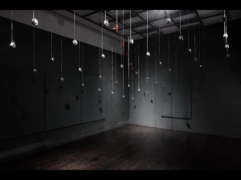 Paul DeMarinis has been making digital sound sculptures and other works since the mid-seventies. In that era, many artists were strongly influenced by the thinking of John Cage, who was interested in the act of hearing itself, and chose not to make distinctions among noise, ambient sound, and music. For this exhibition the artist offers a sound installation that refers back to the classic do-it-yourself days of the 1980s when low budgets and modest means were the rule. Simple aluminum pie plates in a gridded and suspended plane generate staccato percussive sounds when struck by dancing metal shards reacting to interruptions in the flow of an electronic signal. The echoes of the sound, and the clicks of the breaking current in the associated loudspeakers, in addition to the otoacoustic (internal ear-originated) emissions, create a complex soundscape for the attentive listener: falling rain, or faint and faraway marches.
